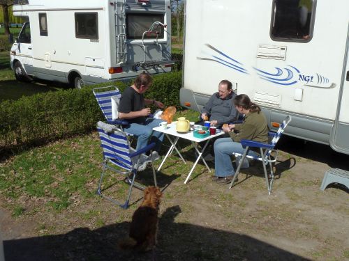 Und während ich noch am Kaffeekochen bin, kommt die Platzaufsicht wie jeden Tag vorbei, und verlangt doch tatsächlich, dass wir umparken sollen, damit wir mittig auf unsrem Platz stehen. Hallo, das tun wir nicht, denn seit Freitag stehen wir so und er hats täglich zweimal gesehen. Und außerdem stehen alle anderen genauso da.