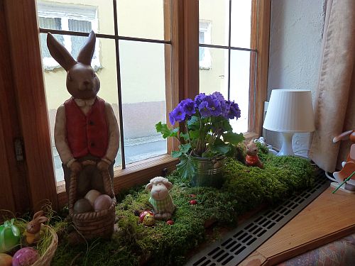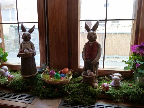 Boah, ich kann jetzt ne Weile keine Schokoladeneier mehr sehen. Bin pappsatt. Nach einem Verdauungsschläfchen ists auch schon wieder Zeit fürs Abendessen. Wir machen uns also auf die Suche nach einer Gaststätte und finden auch eine. Sie heißt Zur Alm und ist liebevoll österlich geschmückt.