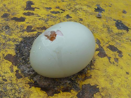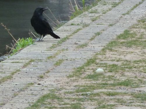 Und unten am Main finde ich tatsächlich ein Osterentenei. Leider ists schon angefressen, sonst hätte es einen Ehrenplatz im Womo bekommen. Und nachdem ichs wieder zurückgelegt habe, zeigt sich, wer der Übeltäter war.