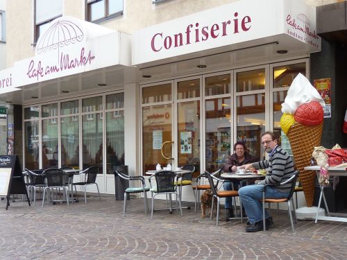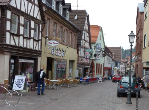 Inzwischen sind Wiebkes, die auf der Urlaubsrückfahrt sind, hier gelandet und wir machen uns gemeinsam nochmal auf den Weg ins Städtchen, denn ich habe in einer Große-Größen-Boutique ein Oberteil gesehen, und wir machen die Entscheidung, ob wir gleich weiter nach Röttingen fahren, oder morgen hier einkaufen gehen, davon abhängig, ob die Mehrheit meint, ich solle das Teil morgen anprobieren. Also gut, wir bleiben hier und gehen morgen in diesen Laden schräg gegenüber von unsrem Himbeertortencafe.