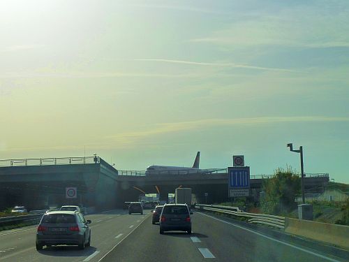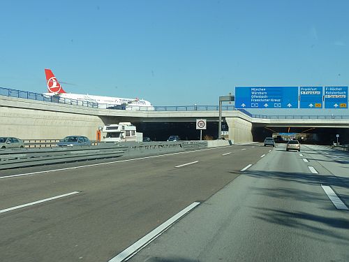 Und am Flughafen hatten wir das Glück, dass gerade ein Lufthansaflieger über die Autobahn rollte. Darauf warten wir schon lange.
