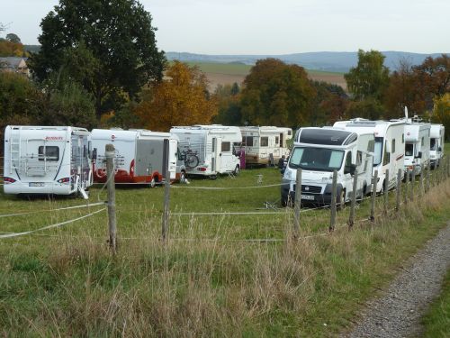 Heute sind wir schon um 10:00 wach, aber zum gemeinsamen Frühstück hats trotzdem nicht gereicht. Wir genießen noch kurz die Sonne und dann herrscht Aufbruchstimmung. Nacheinander schaffen sich die Längssteher rückwärts aus der Wiese, und auch wir kommen gut raus. Gottseidank.
