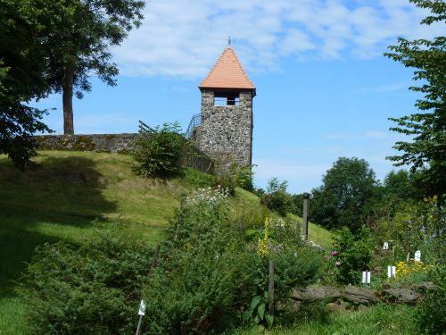 Zum Schlossberg gehts ganz schön hoch, aber es lohnt sich, Oben hat man eine herrliche Aussicht auf den Vogelsberg. Rundherum ist ein Vogelsberggarten mit Infos über die einzelnen Pflanzen, die hier wachsen. Außerdem gibts noch einen Kräutergarten.