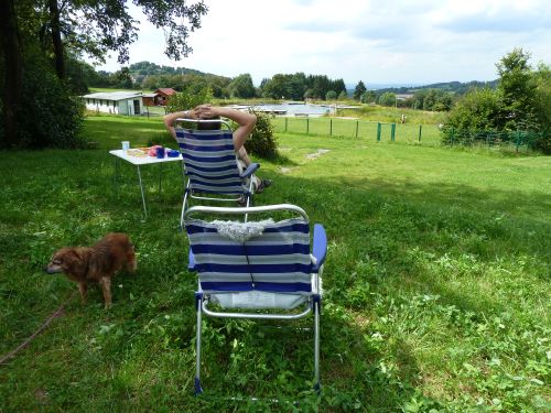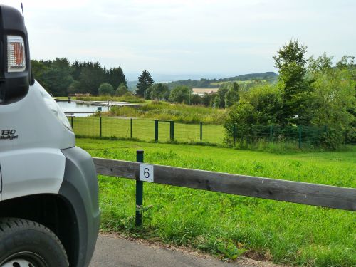 Der Platz liegt direkt neben dem Naturschwimmbad und wir haben einen herrlichen Weitblick.