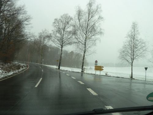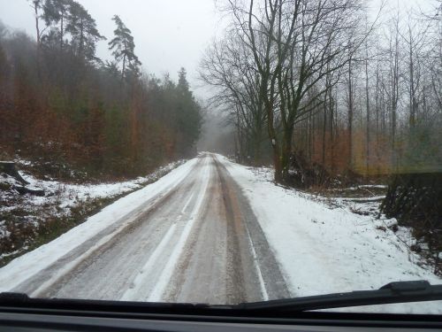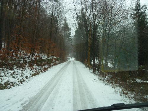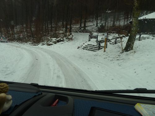 Leider endet der Weg an einem Haus, die Einfahrt war zu eng und steil zum Wenden, Peter fährt sich fest, kommt bei dem Schneematsch nicht mehr aus einer Senke im Weg raus, und es macht sich Hektik breit. Ich kanns Womo nicht anschieben, bin zu schwach.... Naja, ich muss nix weiter sagen, denn jeder kennt solche Situationen der Hilflosigkeit und kurz vor der Scheidung.