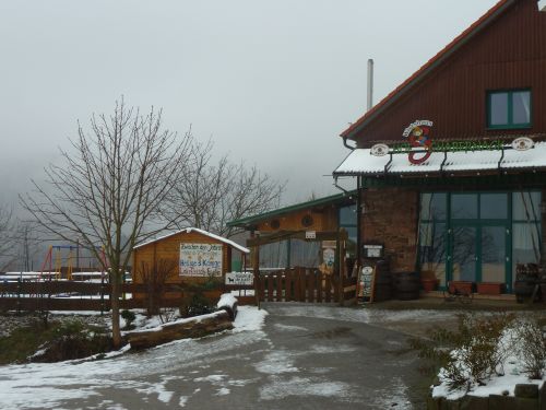 Hier hatten wir bisher immer schlechtes Wetter. Und heute auch, obwohl die Wetterkarte was anderes sagte. Egal, wir sind hartgesotten, und die Wege noch hartgefroren, also nicht matschig.