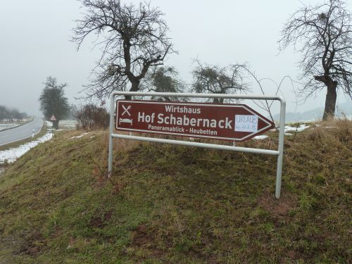 Doch die Rettung naht in Form des Eigentümers der anvisierten Hofeinfahrt. Er macht erst mal sein Hoftor zu. Klasse. Und dann erklärt er uns, dass der Weg bis zur Rodberghütte zwar weitergeht, aber nicht freigeschoben ist. Dort oben gäbe es aber einen Wendehammer, und er erklärt uns den Weg zum Hof Schabernack. Der ist nämlich woanders und von hier aus tatsächlich nicht erreichbar.