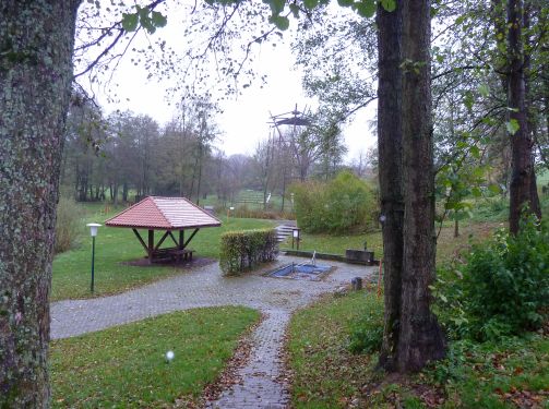 Nach einem ausgiebigen Frühstück bei Wiebke und Konrad wagen wir trotz trüber Witterung einen Alkoholverdunstungsspaziergang und nehmen dazu den Nordic-Walking-Rundweg um den Sportplatz herum.