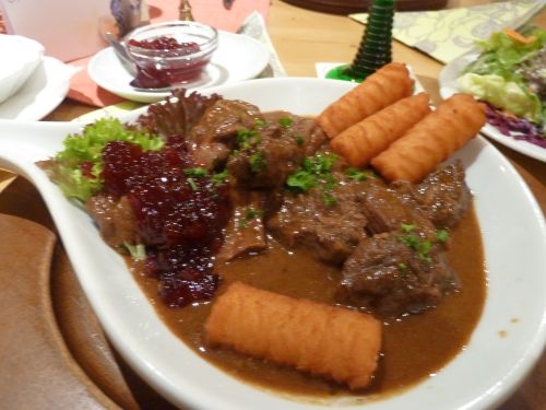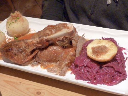 Wiebke hat Gans, also keine ganze Gans, nur ein Viertel davon, aber es ist reichlich. Und ich hab wie gestern wieder Wildererpfanne. Lecker wars. Und hinterher gibts noch einen Verteiler.
