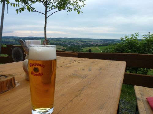 Zum Abendessen gehn wir in den Biergarten und genießen auch hier die Aussicht.