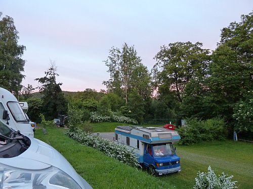 Dass die PKWs hinter uns parken stört uns dabei nicht. Schlimmer ist, dass wir keinen Fernsehempfang haben. Aber damit müssen wir leben. Einen Abend wirds gehen.
