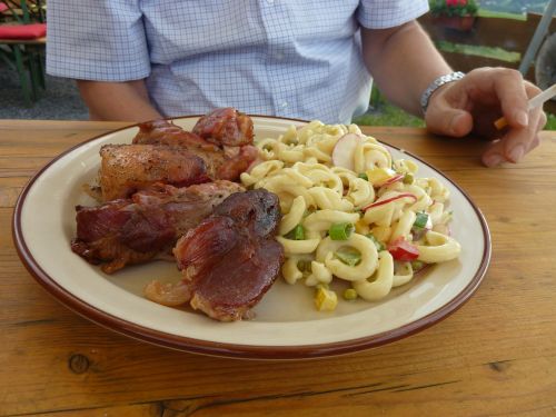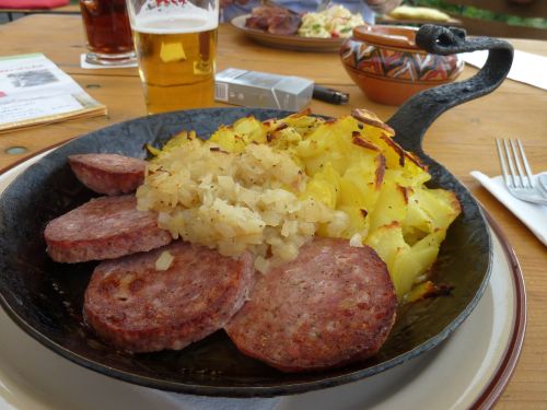 Peter hat Haspel, und bei mir gibts gebackenen Preßkopf. Und damit der Magen damit klar kommt, schicken wir einen Schlehenbrand hinterher. Schmegge musses.
