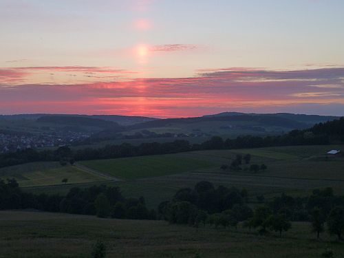Den restlichen Abend verbringen wir mit unsrem unverbaubaren Blick auf den Spessart vor unsrem Womo, bis uns die Kälte und die Dunkelheit reintreibt.