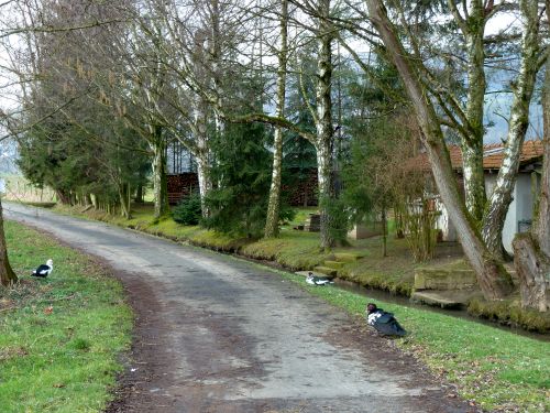 und danach weniger romantisch an der Bahn lang. Dann biegen wir ab und begegnen diesen seltsamen Tieren