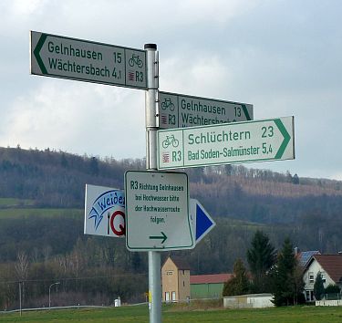Es gibt genügend ebene gut ausgebaute Wanderwege, und wir nehmen erst mal den Wanderweg Nr. 1 Richtung Wächtersbach. Es geht entlang der Salz, die sich hier mit der Kinzig vereint