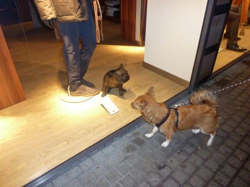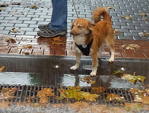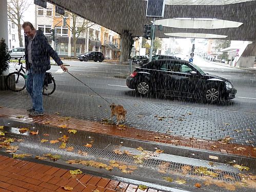 Und als Peter gerade zu Deichmann rein ist, kommen aus zwei Seitenstraßen Fanfarenzüge raus und Carl hat ne mittelprächtige Krise gekriegt. Herrchen weg und die Welt geht unter.