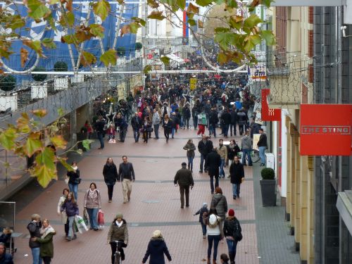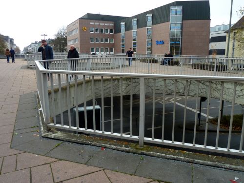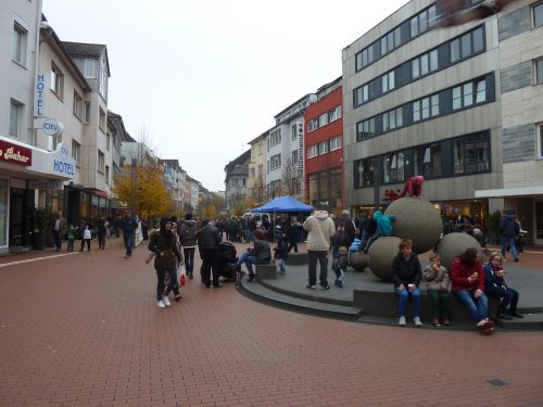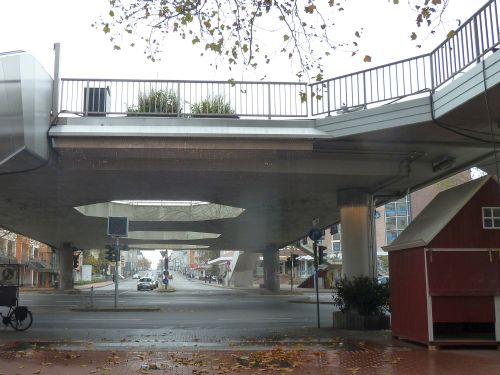 Am Ende der Fußgängerzone ist das Selterstor. Und dahinter sieht man schemenhaft die Fußgängerüberführung, auch Elefantenklo genannt.