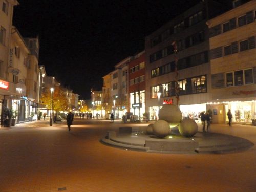 Diese Stadt fehlt uns noch, denn Peter wollte nicht zur Landesgartenschau und wir kennen nur die Ortsschilder, weil wir immer nur vorbei fahren. Also fahren wir heute mal in die Stadt hinein. Als wir ankommen ists bereits dunkel, aber der Parkplatz am Schwimmbad ist gut beleuchtet.