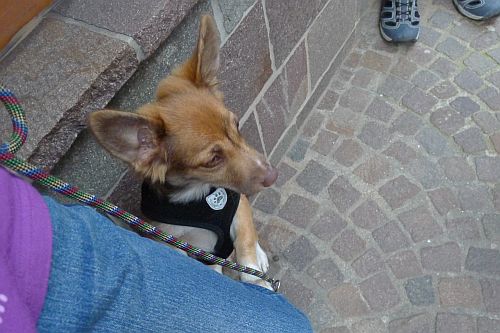Danach gehen wir nochmal übers Fest durch die Altstadtgassen, und unser Hund ist anfangs bei der Live-Mucke ein wenig verunsichert, wenn der Bass dröhnt,