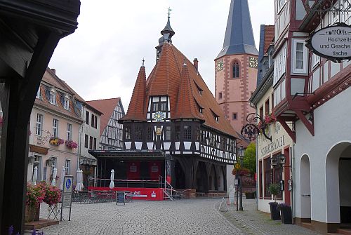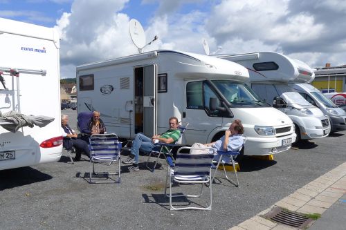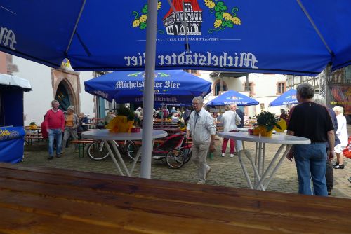 Heute treffen wir uns mit den Altrhoischnooke in Michelstadt. Und alldieweil Altstadtfest ist, ist der Platz schon richtig voll und ein Teil steht schon auf dem normalen Parkplatz.