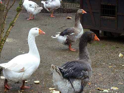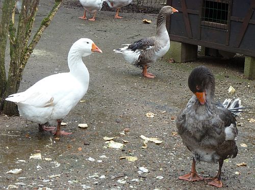 Dieser fette Gansert rechts ist bald reif und fängt sich deshalb wohl schon mal an zu rupfen. Braves Tier.