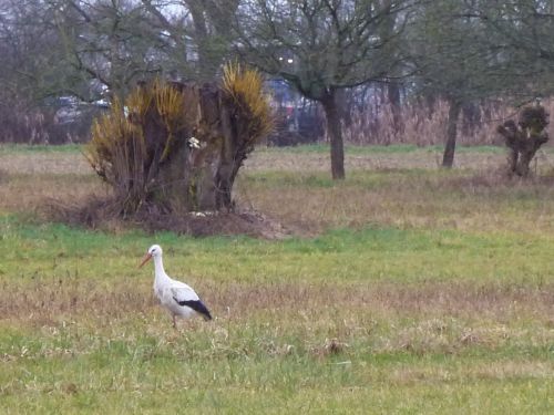 Bevor es bei uns ausartet machen wir uns auf den Weg ins Städtchen. Unterwegs treffen wir Freund Adebar, der auf der Suche nach Nahrung ist.