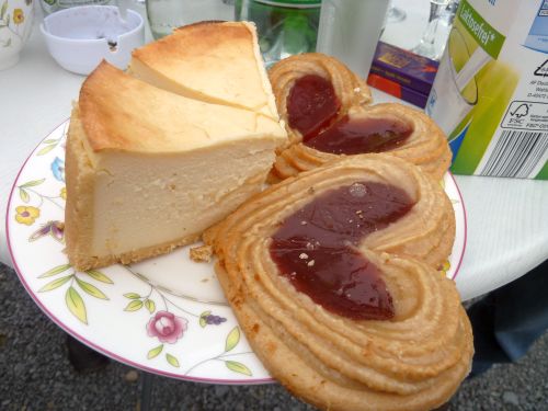Zur Feier des Tages hat Erni eine Kanne Kaffee und Valentinstagsherzchen hingestellt, obwohl der Tisch bereits voll mit hochgeistigen Getränken stand. Hat aber noch gepasst und geschmeckt.
