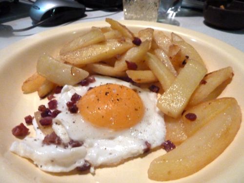 Reste von gestern, und danach wagen wir uns zum Absacker nochmal kurz raus in den Nieselregen.