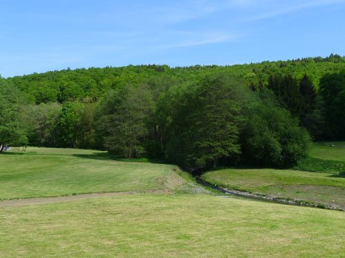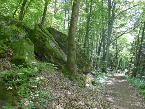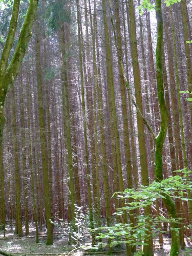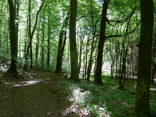 Bergauf bergab gehts durch urigen Buchenwald, an düsteren Tannen vorbei und dann durch Wiesen an der Ulm entlang.