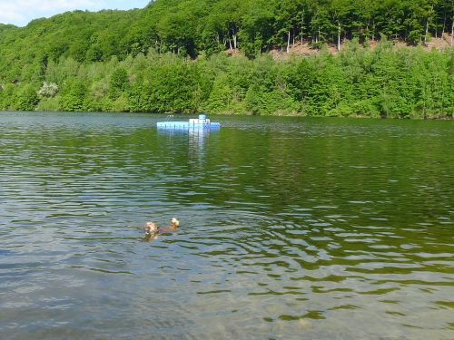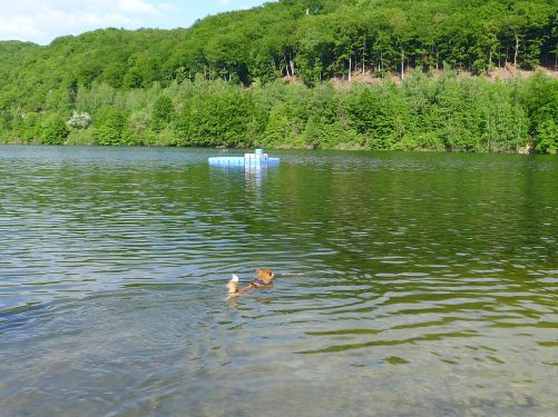 Den restlichen Tag verbringen wir wieder auf unsrer Wiese und gehn nochmal an der Talsperre entlang. Heute testen wir, ob Carl beim Stöckchenwerfen ans andere Ufer schwimmen will oder zurückkommt.