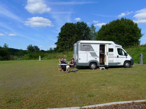 Den Rest des Nachmittags verbringen wir unter der Markise und schauen belustigt den inzwischen immer weiter eintrudelnden Nachbarn zu. Der Stellplatz füllt sich. Es gibt auch nette Gespräche, und so vertrödeln wir den Tag.