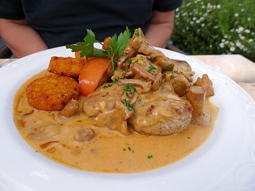 Heute hatte ich das Rumpsteak und Peter Lendchen in Pfifferlingrahm, und wieder wars lecker, und wieder inkl. Williams unter 40 €.