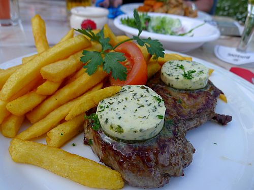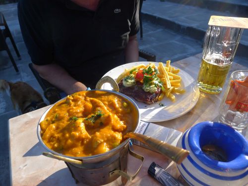 Peter hatte Rumpsteak und ich Hühnchencurry mit Mango. Lecker.