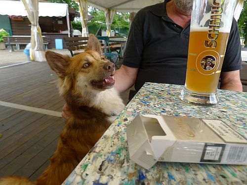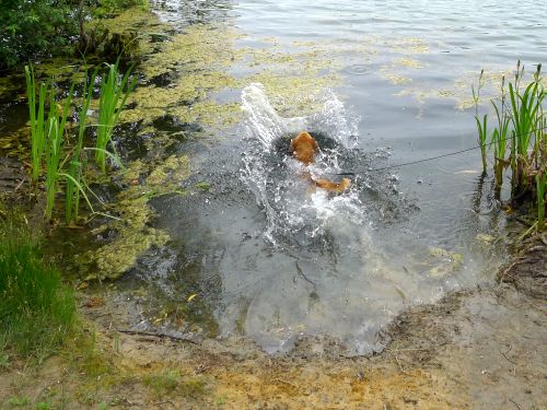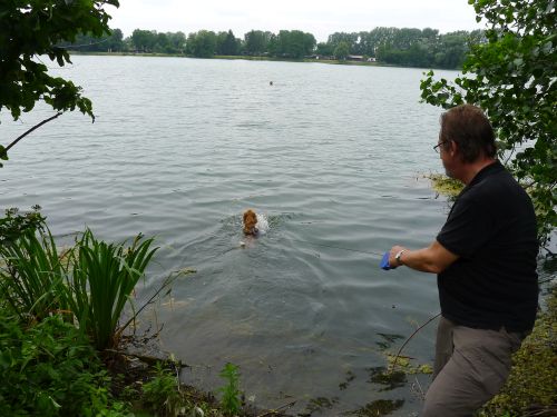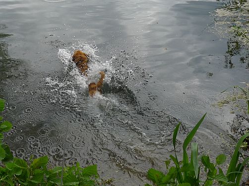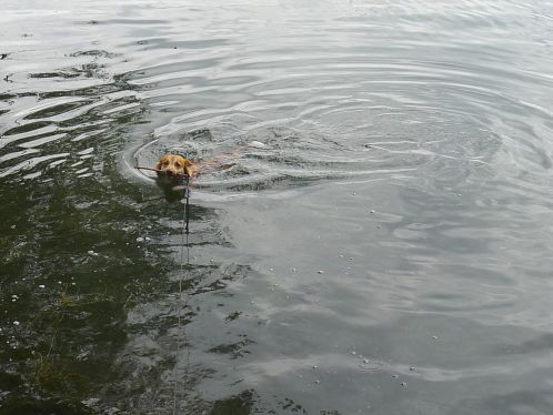 Gottseidank war er an der Flexi und Peter konnte ihn zurückholen, denn der Ball war ein Schwimmer. Carl hätte bestimmt ganz schön dumm geguckt, wenn der Ball plötzlich mit ihm gesprochen hätte.