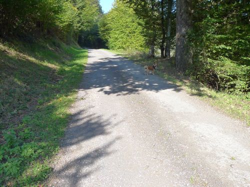 Peter bewaffnete sich mit den Walkingstöcken um sein Bein zu entlasten, und Carl durfte frei laufen, denn man konnte den Weg weit einsehen. Er rennt sowieso nicht weit vor, sondern dreht sich immer wieder um, und schaut ob wir noch da sind.