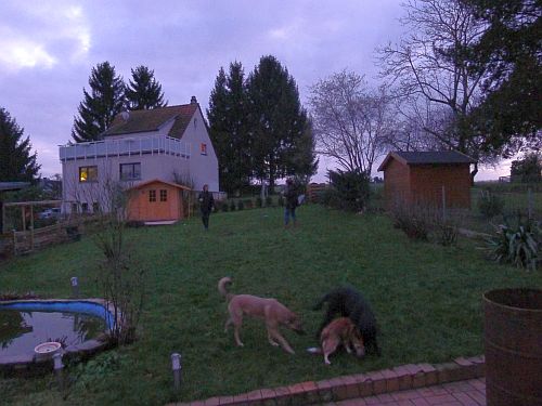 Zuerst dürfen sich die Hunde noch bissi bewegen bevor es zu dunkel wird und wir sie nicht wiederfinden.