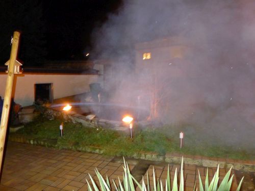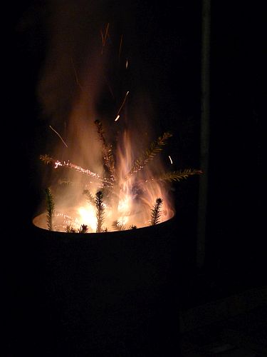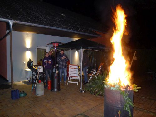 Weil wir Weihnachten unterwegs waren, gabs diesmal anstatt Nachfeier gemeinsames Baumverbrennen, neudeutsch Knutfest, in Linsengericht bei Thomas und Steffi. Als Übernachtungsplatz diente uns ein günstig gelegener Firmenparkplatz, 50 m vom Ort des Geschehens entfernt.
