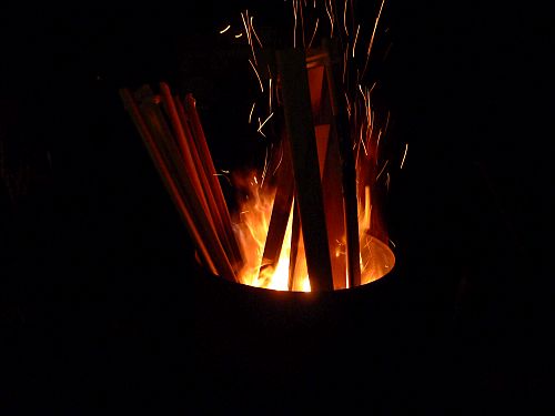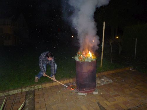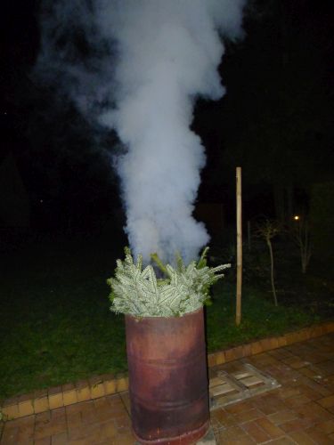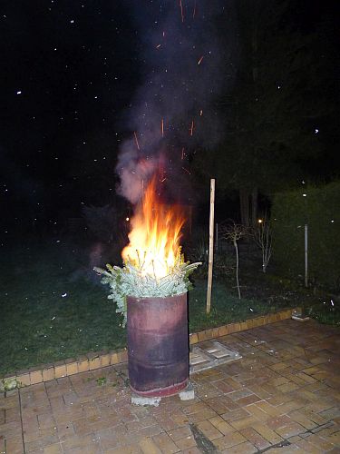 Und weil Knut ja was mit Ikea zu tun hat, kam nach dem Weihnachtsbaum und diversen zerlegten Paletten noch ein Lattenrost ins Fass.