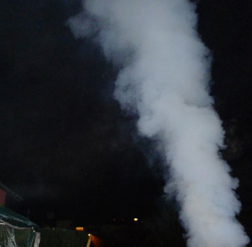 Die Fische kriegen auch noch eine Illumination, und dann gehts los. Der anfänglich sternenklare Himmel war binnen kurzer Zeit bewölkt, aber gottseidank verzog es sich dann doch recht schnell, bevor der Flugverkehr umgeleitet werden musste.