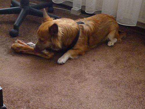 So ein Dödel. Dabei hatte er eigentlich einen großen Knochen zur Beschäftigung gekriegt. Um den kümmerte er sich aber erst zuhause.