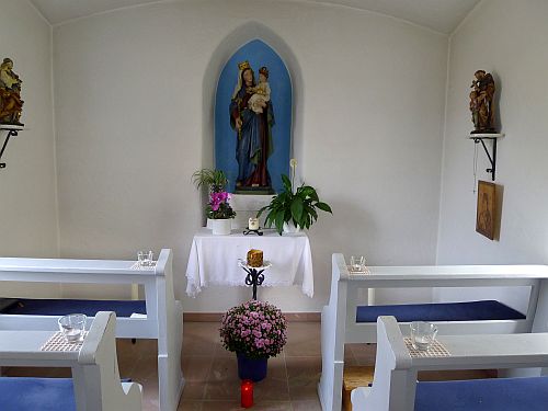 Der 6 km lange Besinnungspanoramaweg geht gleich hinter den Häusern auf der