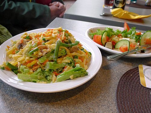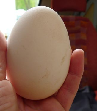 Fürs Abendessen am Sonntag haben wir Käse und Gänseeier gekauft, ansonsten hielten wir uns beim Einkauf zurück, denn der Kühlschrank im Womo ist noch voll, weil wir immer in der Campingkneipe gegessen haben.