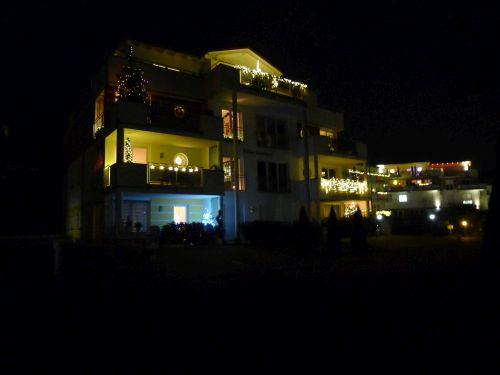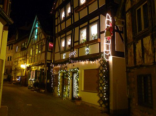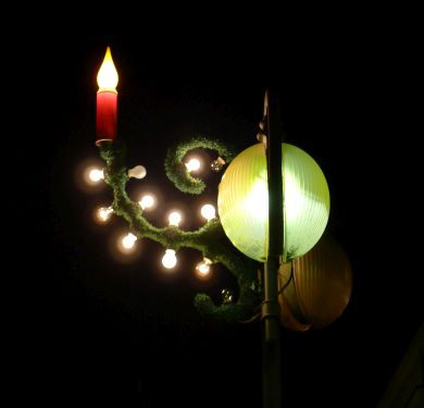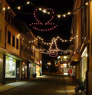 Es wird grad dunkel als wir ankommen, und wir machen einen Spaziergang durchs weihnachtlich beleuchtete Städtchen.