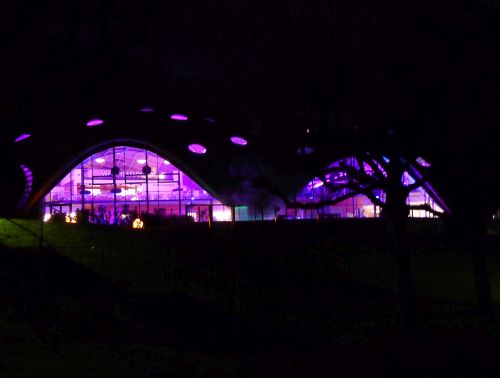 Das Schwimmbad sieht allerdings immer so aus, stimmungsvolles Farbenspiel beim abendlichen Badevergnügen.