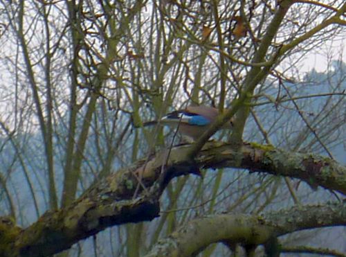 Und vom Wohnmobil aus können wir 5 Eichelhäher auf dem Apfelbaum beobachten.