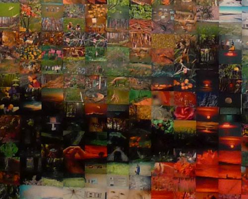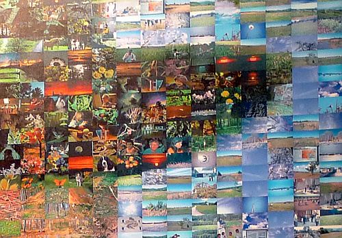 Das Mosaik besteht aus diesen winzigen Bildchen. Unvorstellbar, dass sowas funktioniert und man die Motive erkennen kann.