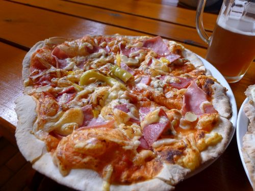 Peter hatte Pizza und Rainer Forelle. Dazu gabs für die Männer Bier und ich hatte drei Federrote. Schee wars.