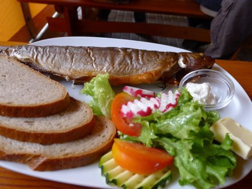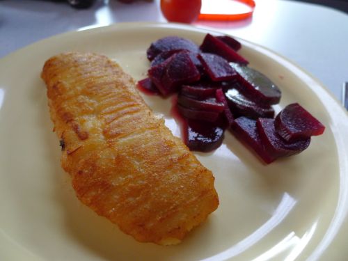 Genug Aktivität für heute, zum Abendessen gibts gesunden Fisch mit Rote Beete-Salat und Brot,