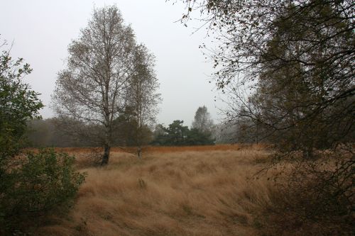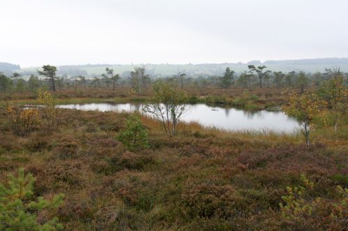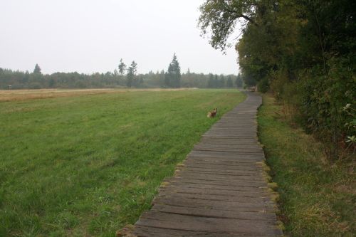 Ich hab heute Arzttermin und Peter hat frei, also können wir gleich danach los und gegen 12:00 sind wir am Schwarzen Moor. Der leichte Nieselregen passt gut zur Landschaft, allerdings weniger zum Knipskasten, denn es ist trüb und den Bildern fehlt die Farbe.