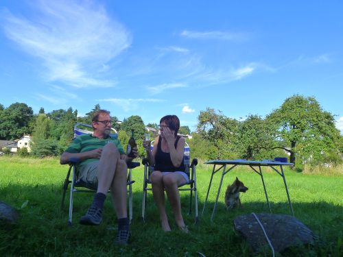 Nach einen kurzen Mittagsschläfchen auf dem Großparkplatz machen wir uns auf den Weg zu Babs, ihrer Mama zum 90. gratulieren. Eigentlich wollte ich bei Cola bleiben, aber Aperol-Spritz sah so verlockend aus, dass ich doch zugelangt habe. Am helllichten Tag. Anschließend fuhren wir mit Wegzehrung im Gepäck wieder nach Leun und hier stoßen wir nochmal auf Rosemarie an.